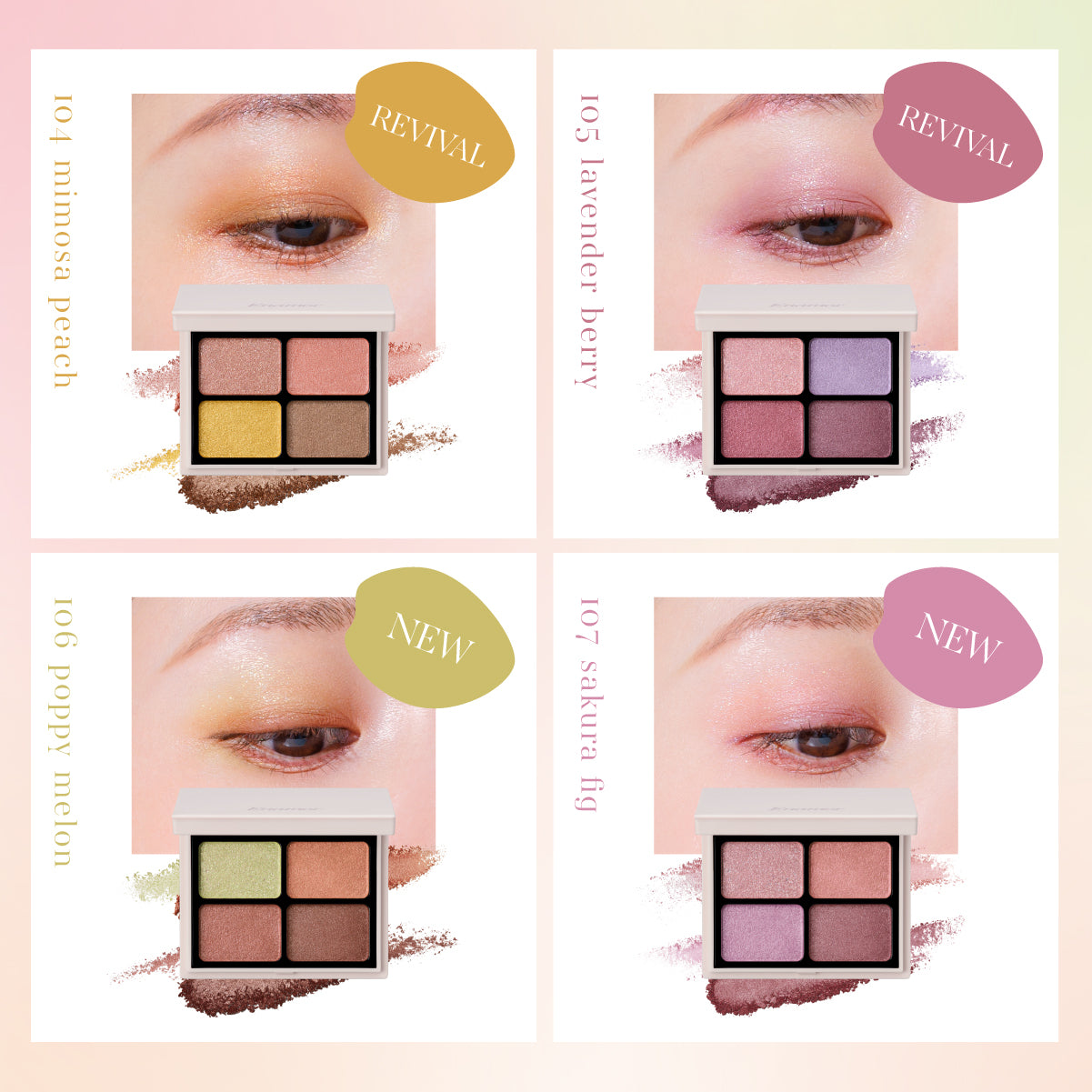 明るい季節にぴったりな鮮やか発色ながら、デイリーにも使用しやすい絶妙なカラーバランスで、愛らしくハッピーな目元へ。